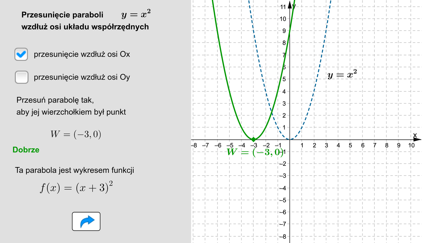 Przesunięcie wykresu jednomianu kwadratowego wzdłuż osi układu współrzędnych
