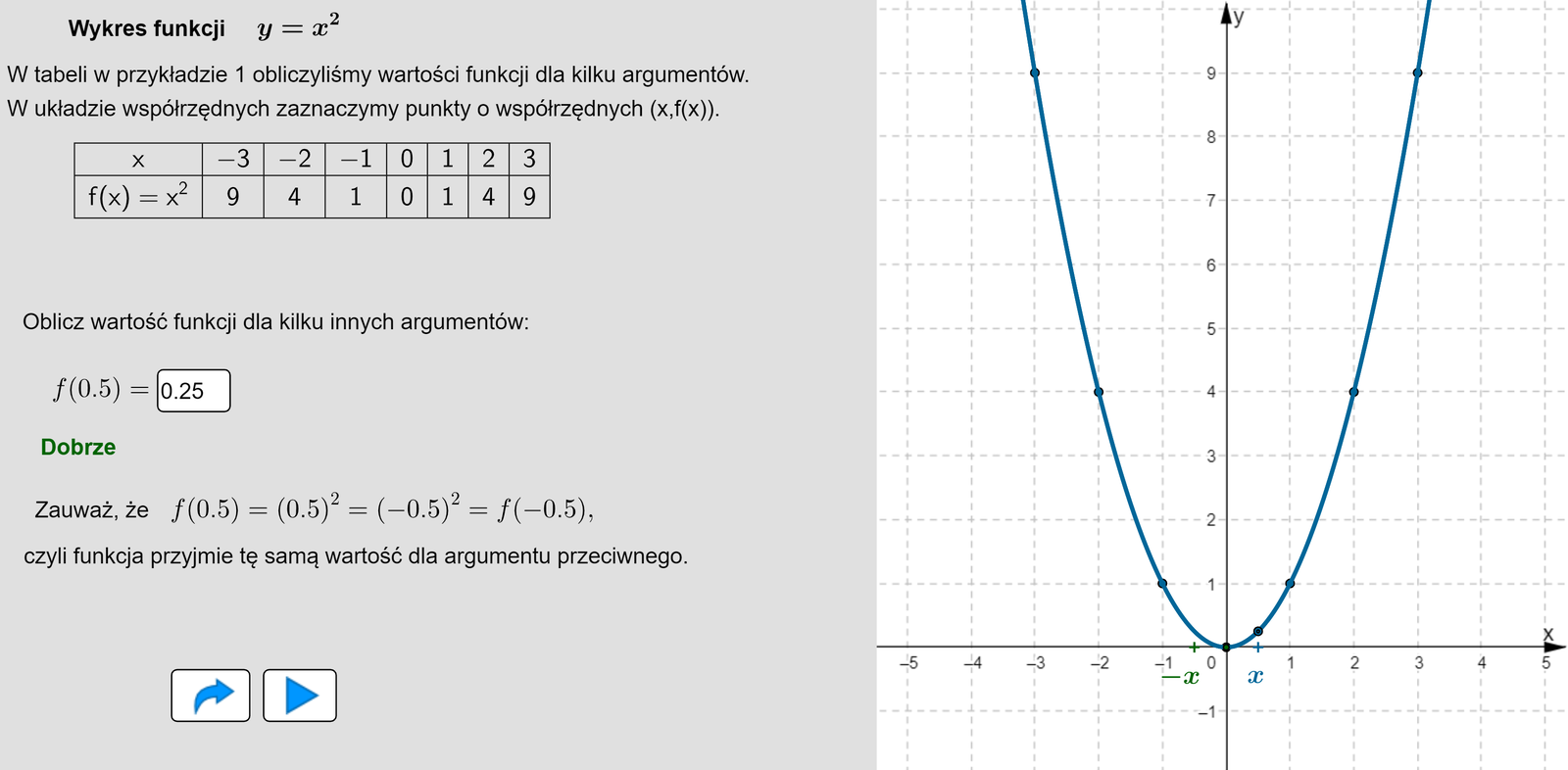 Uzasadniliśmy wcześniej, że dla każdej pary argumentów, które są liczbami przeciwnymi, funkcja przyjmuje tę samą wartość.