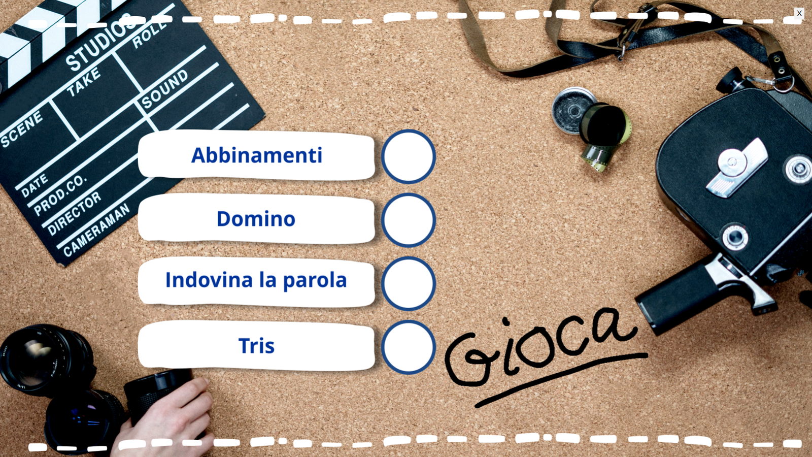 Gioca a quattro giochi diversi per ripetere e approfondire il lessico della cinematografia.
