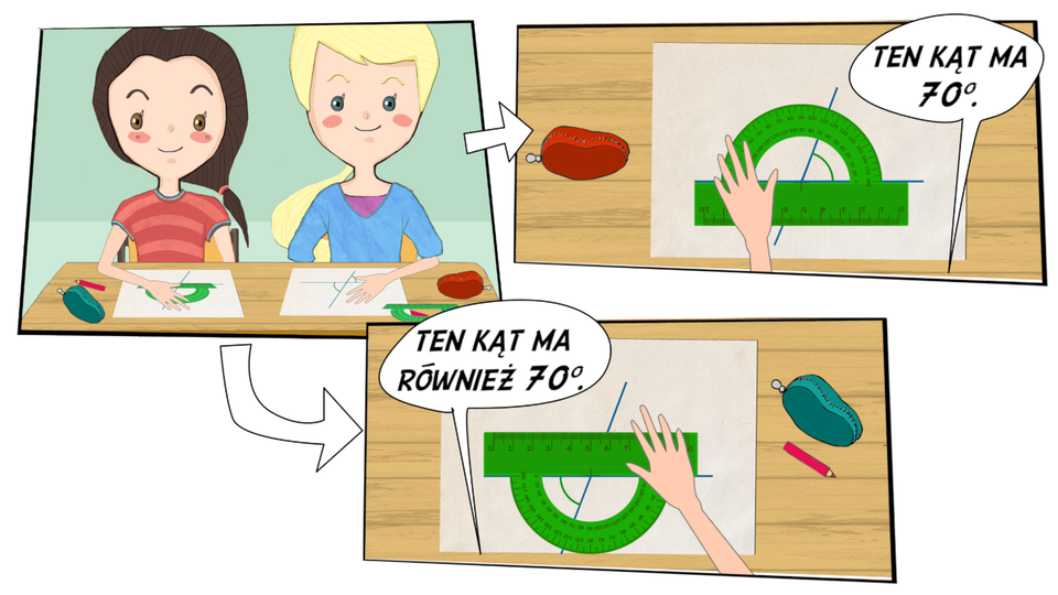 Animacja przedstawia w jaki sposób należy mierzyć kąty wierzchołkowe.