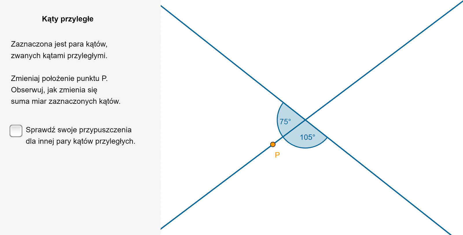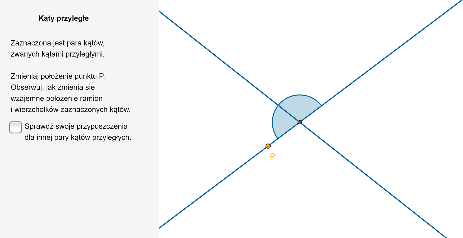 Animacja przedstawia w jaki sposób należy mierzyć kąty przyległe.