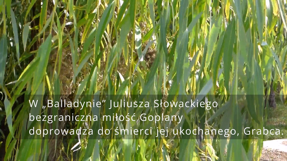 Film przedstawia gałązki wierzby, które poruszają się pod wpływem wiatru. Tło jest zamazane, przeważają odcienie zieleni. Na filmie pojawia się napis: „W „Balladynie” Juliusza Słowackiego bezgraniczna miłość Goplany doprowadza do śmierci jej ukochanego Grabca”.