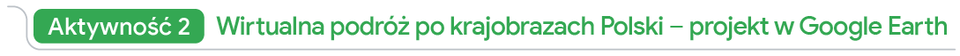 rozpoznaje krajobrazy Polski na podstawie wirtualnych obserwacji w Google Earth, opisów oraz ilustracji