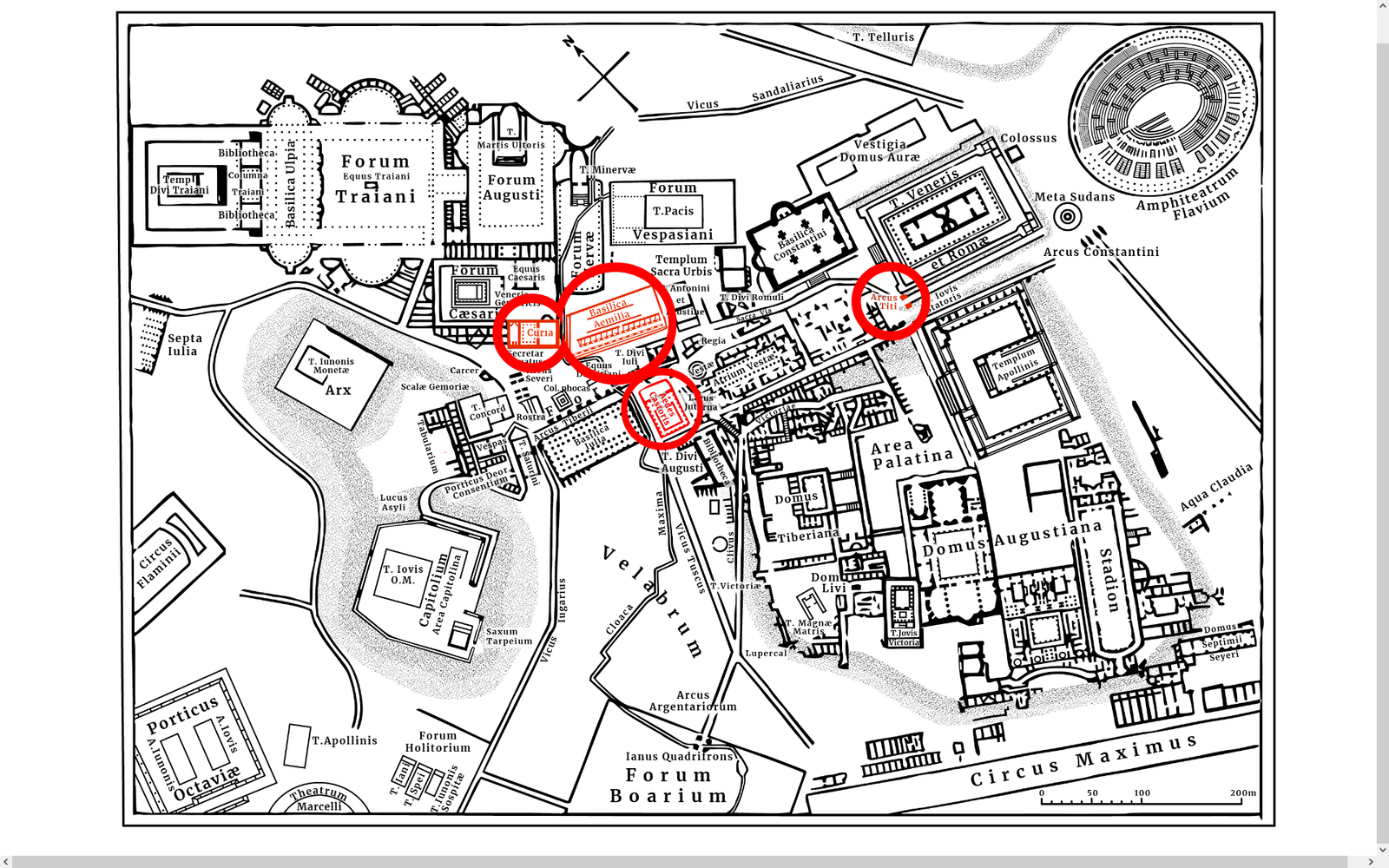Ab utrāque parte basilicae Iūliae magna aedēs sita est, ā dextrā sub clīvō Capitōlīnō aedēs Sāturnī - 1. Aedificia, 2. ōrātōrēs, 3. aerārium, 4. fīliōrum, 5. aedēs, 6. rotundam, 7. sacrīs, 8. domus, 9. collem, 10. senātus, 11. basilicae, 12. pāx, 13. palūs, 14. parte, 15. subterrāneam, 16. "Rōstra" populī Rōmānī, ā sinistrā aedēs Castoris et Pollūcis, Iovis 1. Aedificia, 2. ōrātōrēs, 3. aerārium, 4. fīliōrum, 5. aedēs, 6. rotundam, 7. sacrīs, 8. domus, 9. collem, 10. senātus, 11. basilicae, 12. pāx, 13. palūs, 14. parte, 15. subterrāneam, 16. "Rōstra" geminōrum, quī saepius Rōmānīs in proelīīs auxiliō vēnērunt.