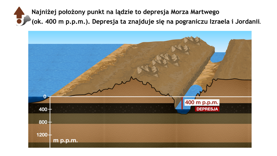 Animacja przedstawia najniżej położony punkt na lądzie, czyli depresję Morza Martwego.