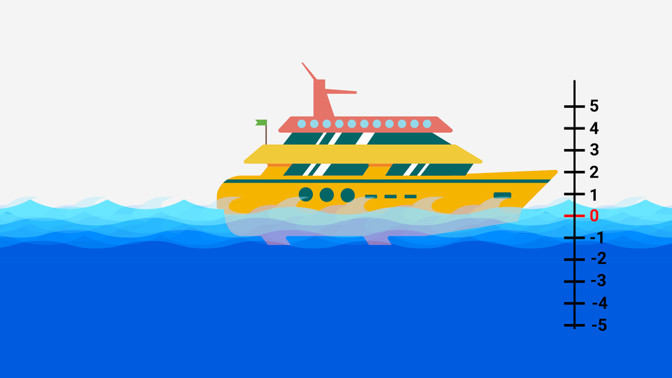 Animacja pokazuje, że liczbami ujemnymi możemy opisywać położenie pewnych obiektów względem poziomu morza.