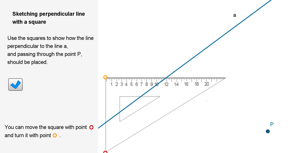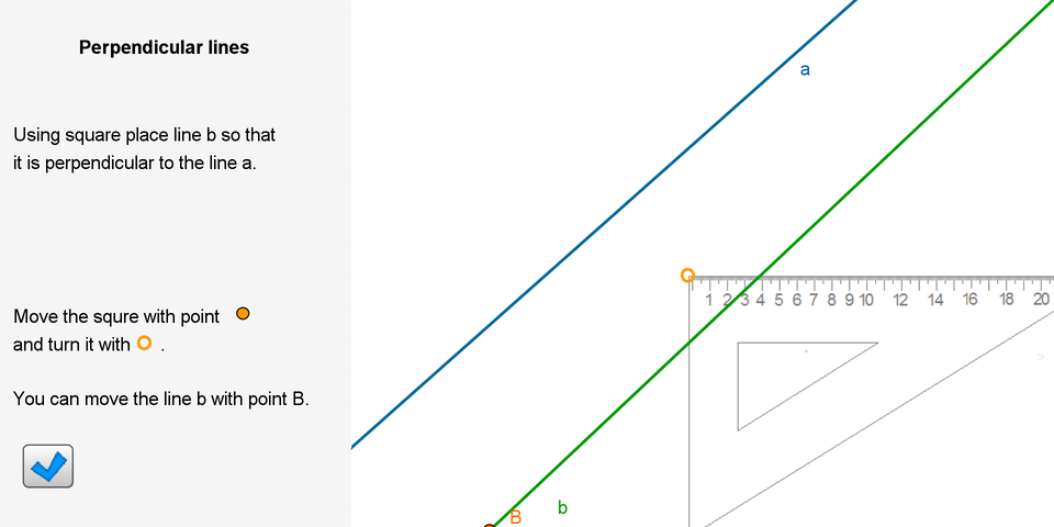 Whether the lines are perpendicular can be checked with a setsquare.