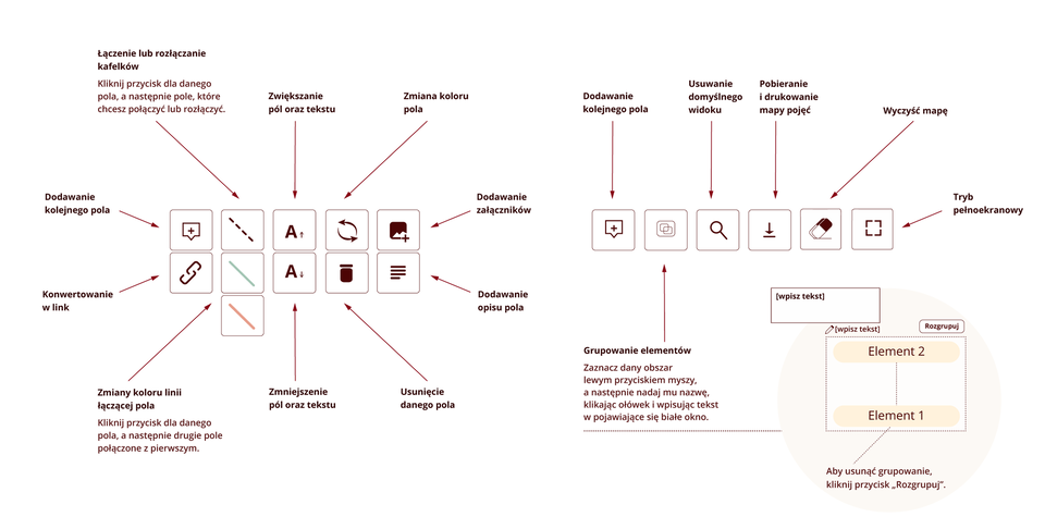 W centralnej części mapy możemy umieścić główne pojęcie, od którego będą odchodziły rozgałęzienia, czyli powiązane koncepcje.