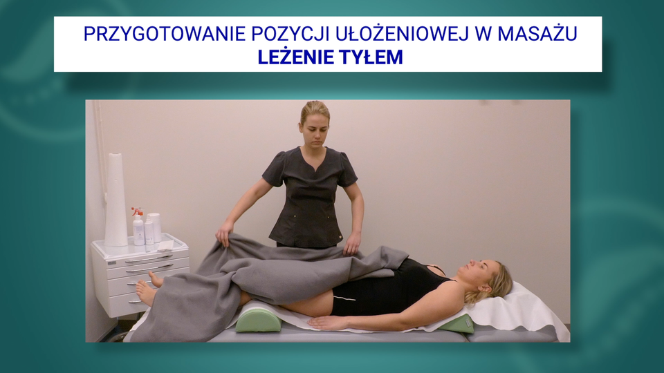 Film przedstawiający przygotowanie pozycji ułożeniowej w masażu - leżenie tyłem.