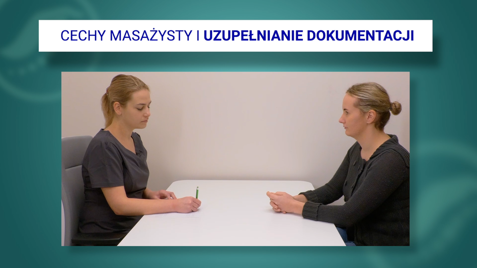 Film przedstawiający cechy masażysty i uzupełnianie dokumentacji.