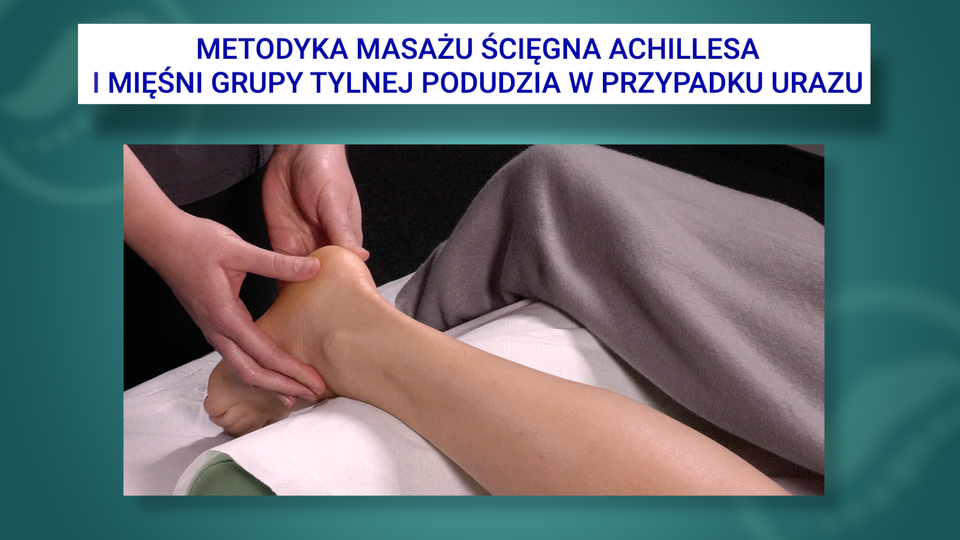 Film przedstawiający metodykę masażu ścięgna Achillesa i mięśni grupy tylnej podudzia w przypadku urazu.