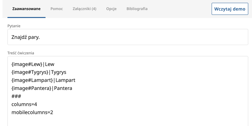 Po wstawieniu tagu image odblokuje się zakładka Załączniki, gdzie w odpowiednie pola przeciągamy ilustracje.