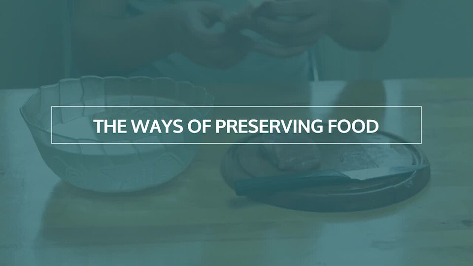 Film "The ways of preserving food" prezentuje sposoby konserwacji żywności. W pierwszej scenie widzimy plastry mięsa moczone w szklanej misie ze słoną wodą, w drugiej scenie widzimy plastry mięsa suszone w piekarniku, w trzeciej scenie widzimy nabiał przechowywany w lodówce, w czwartej scenie widzimy produkty przechowywane w zamrażarce, w piątej scenie widzimy mleko UHT (Ultra-high temperature processing) nalewane do szklanki, w ostatniej scenie widzimy bekon zapakowany próżniowo.