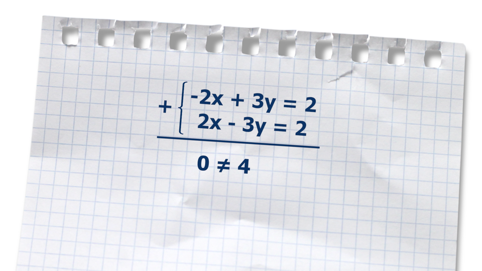 Jeżeli, rozwiązując układ równań metodą przeciwnych współczynników, równanie, które otrzymaliśmy w wyniku dodawania równań stronami, okaże się równaniem sprzecznym, to układ równań nie ma rozwiązania, jest układem sprzecznym.