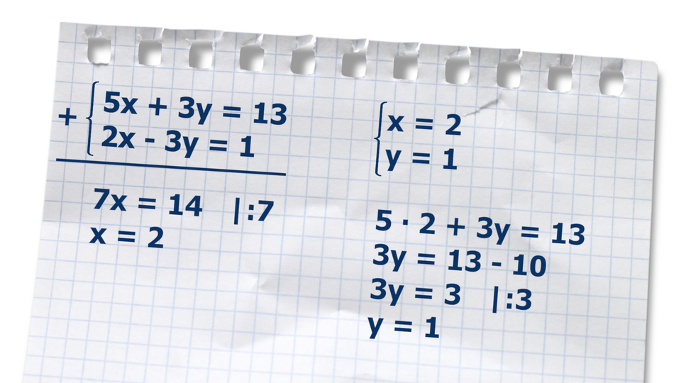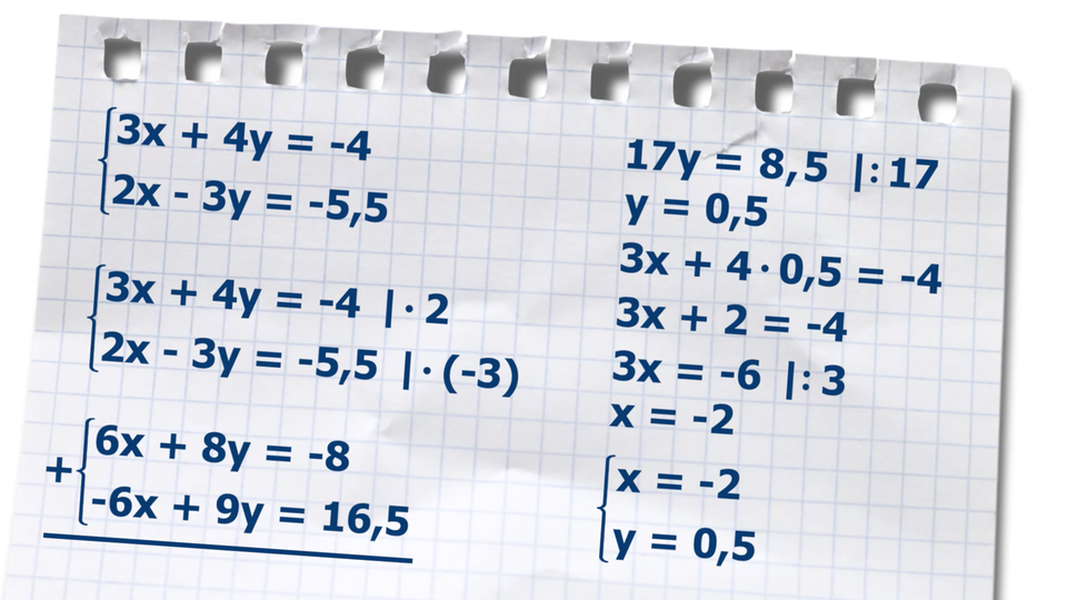Animacja przedstawia przykładowe rozwiązanie pewnego układu równań metodą przeciwnych współczynników.