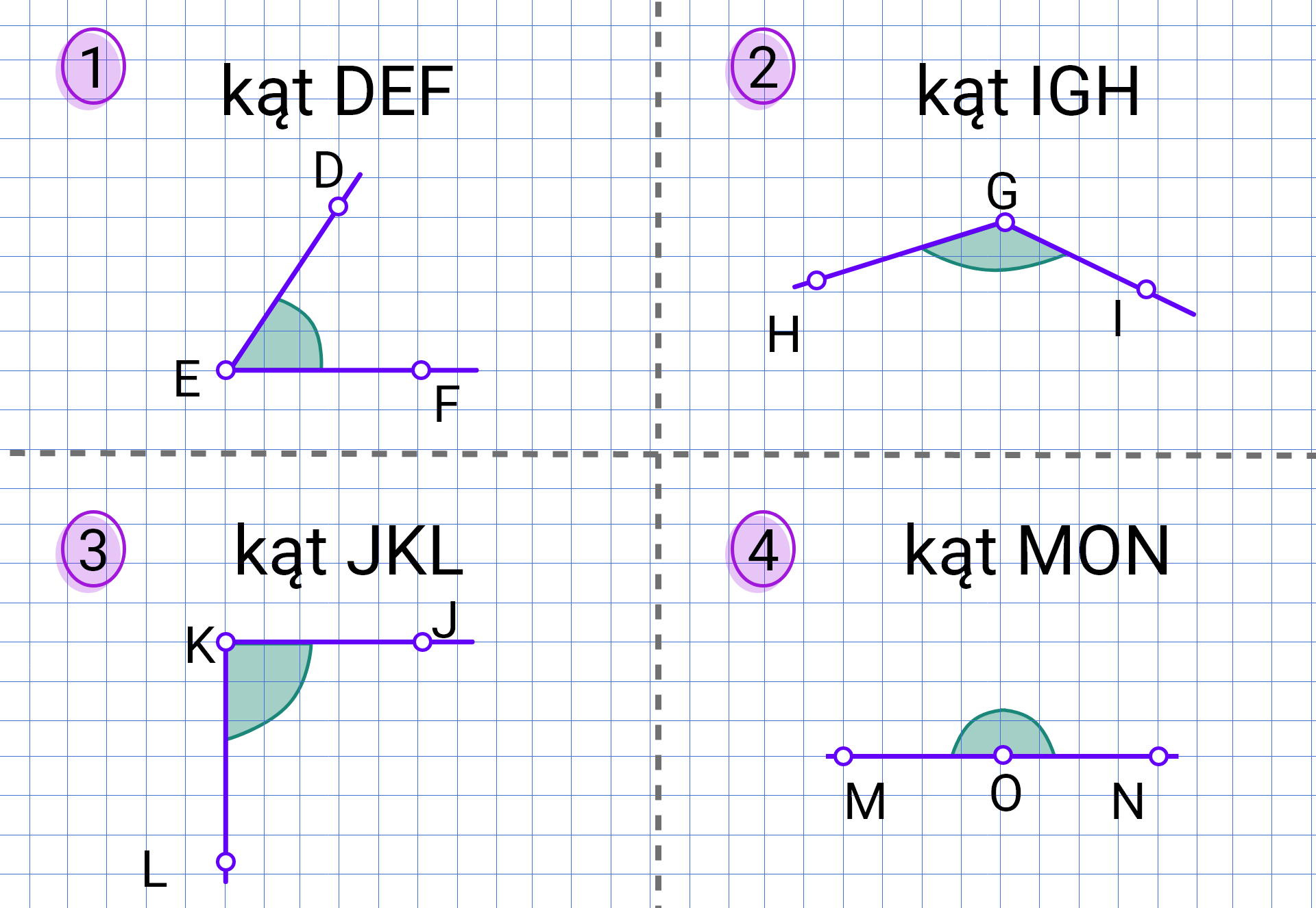 Aby oznaczyć kąt, można najpierw oznaczyć trzy punkty: wierzchołek kąta i dwa dowolne punkty leżące na obu jego ramionach.
