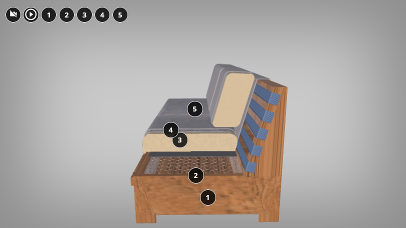 Warstwa wyściełająca- zapewnia żądaną miękkość i komfort; do jej wykonania stosuje się tworzywa spienione, surowce naturalne, luźne materiały i włókna naturalne lub syntetyczne czy formatki i tkaniny pochodzenia naturalnego, zwierzęcego i kombinowanego.