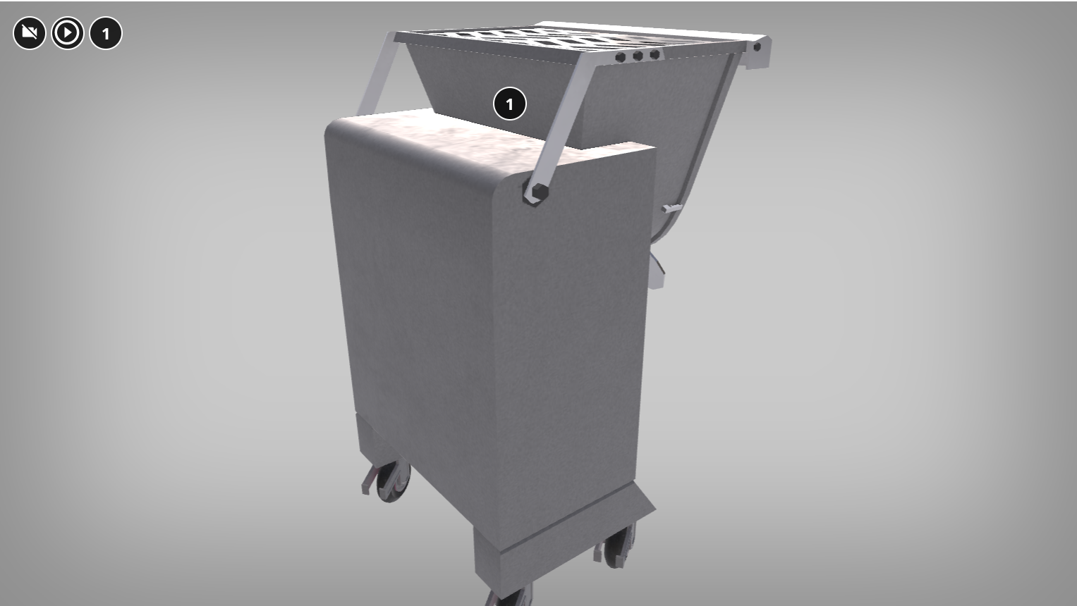 Na białym tle widoczna jest duża maszyna do mielenia mięsa. Model można obracać poprzez przytrzymanie lewego przycisku myszy i poruszania myszką w wybraną stronę.