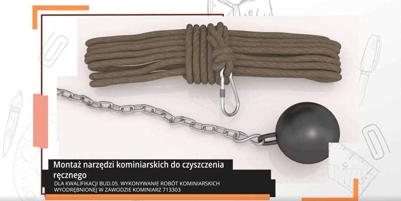Animacja w 3D pod tytułem "Montaż narzędzi kominiarskich do czyszczenia ręcznego".