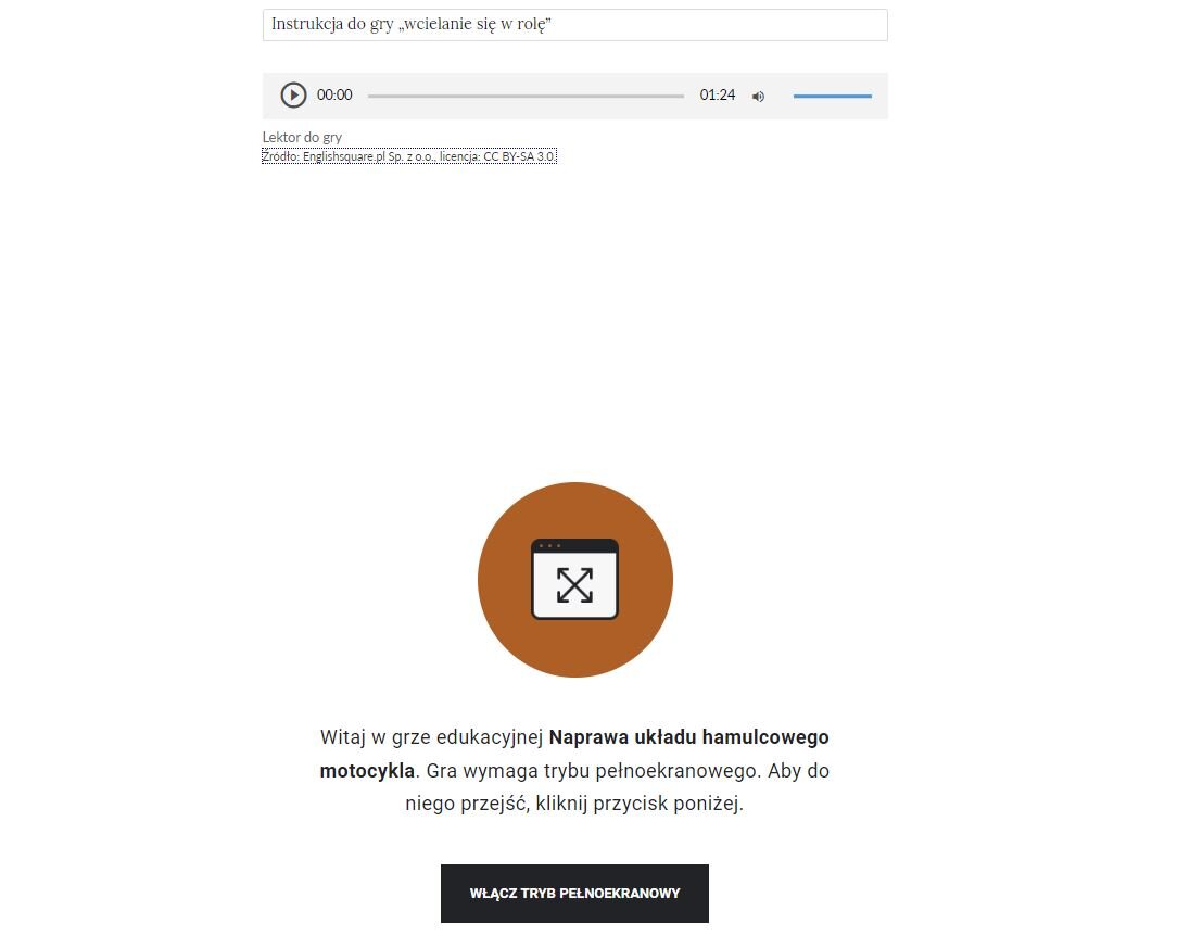 Opis alternatywny dotyczy gry „Wcielanie się w role - naprawa układu hamulcowego motocykla”. Przed grą znajduje się nagranie dźwiękowe oraz instrukcja tożsame ze sobą oraz z poniższą treścią: