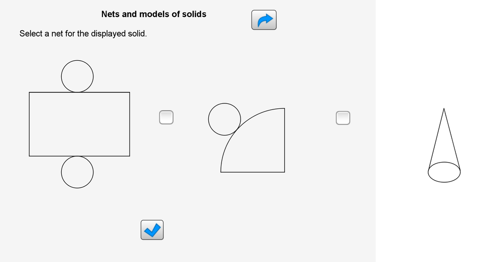 Nets of polyhedrons, cylindercylindercylinder and coneconecone are presentations of these solids on a plane. The nest are useful for calculating the surface areas of solids.