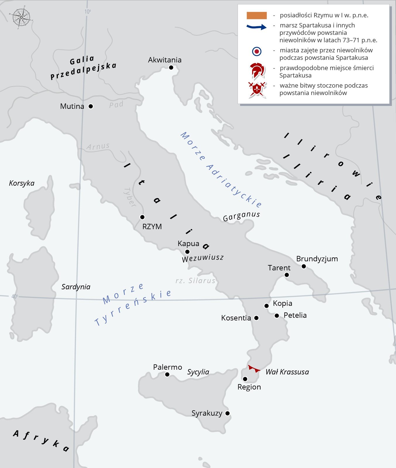 Podaj, w jakim miejscu Półwyspu Apenińskiego zginął Spartakus. Swoją odpowiedź zapisz poniżej.