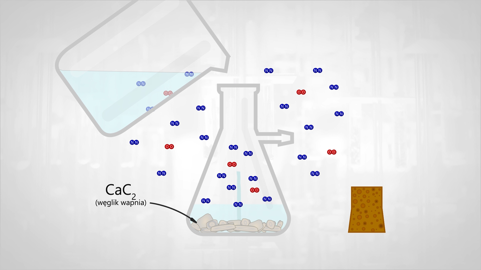 Zapoznaj się z poniższą animacją. Czy wiesz, który z alkinów jest produktem reakcji wody ze związkiem, potocznie nazywanym karbidem? Czy potrafisz podać przykłady jego zastosowań i przebieg reakcji spalania tego węglowodoru?