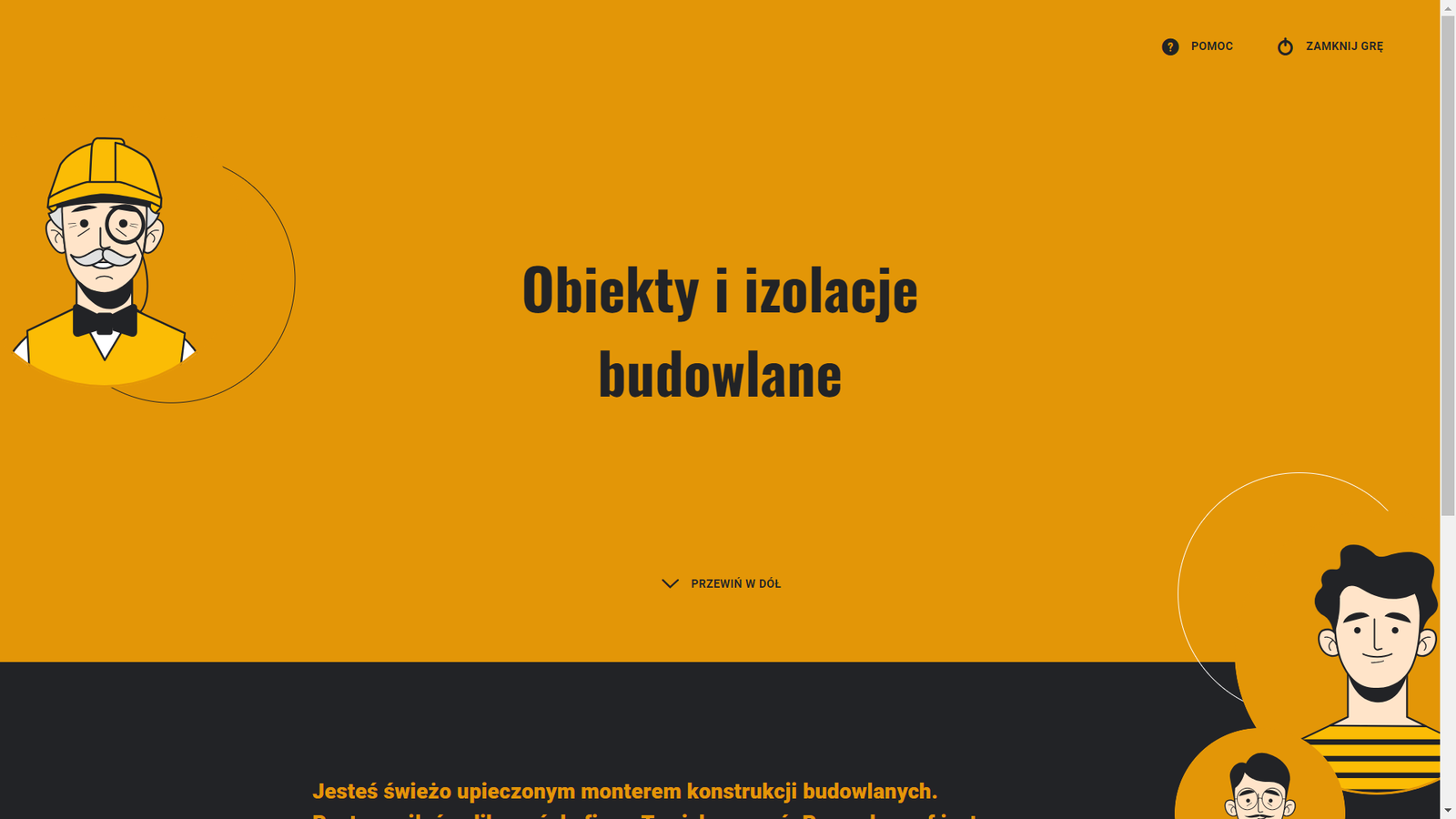 Gra edukacyjna – „Obiekty i izolacje budowlane” wymaga trybu pełnoekranowego. Aby przejść do tego trybu, należy kliknąć przycisk: „Włącz tryb pełnoekranowy”.