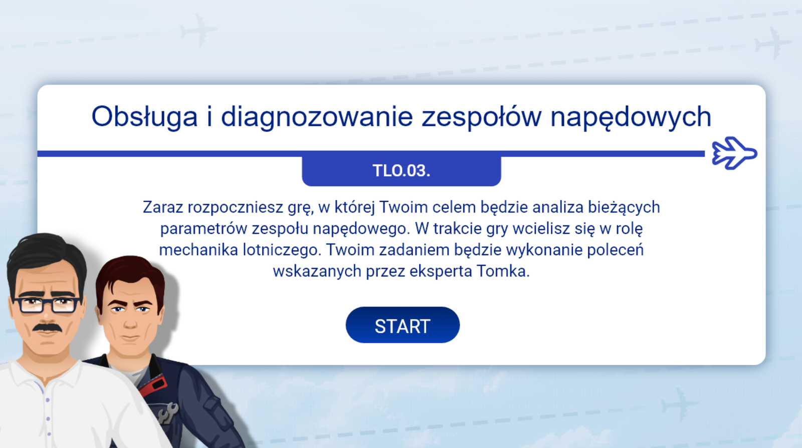 Po zapoznaniu się z zadaniami eksperta i mechanika kliknij białą strzałkę znajdującą się w prawym dolnym rogu ekranu.