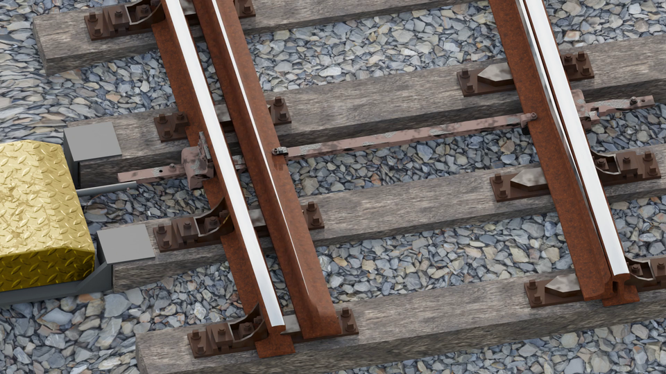 Film przedstawiający schemat działania rozjazdu zwyczajnego pojedynczego.