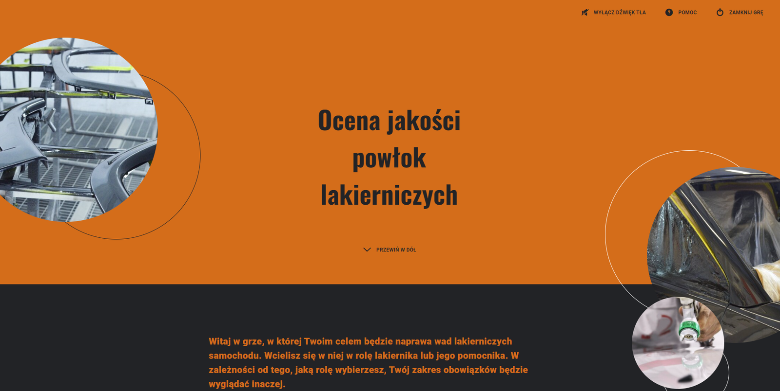 Gra edukacyjna umożliwia zaznajomienie się z różnymi wadami lakierniczymi oraz z metodami, które są niezbędne w ich usunięciu.