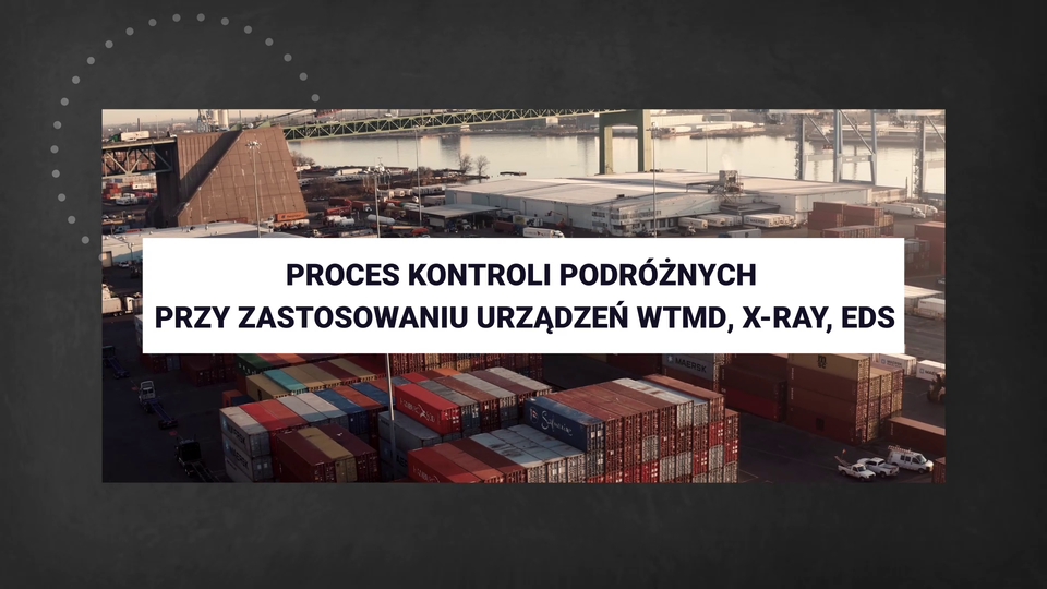 Film dotyczący kontroli podróżnych przy zastosowaniu urządzeń W T M D, X RAY oraz EDS.