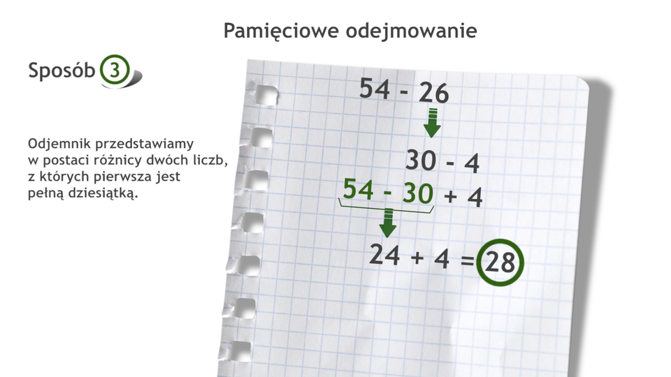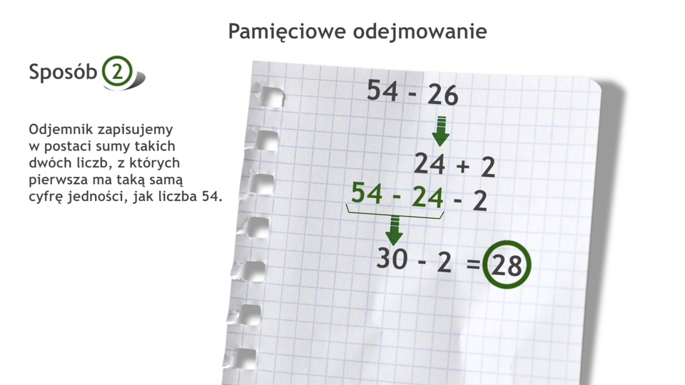Animacja przedstawia drugi sposób pamięciowego odejmowania liczb.