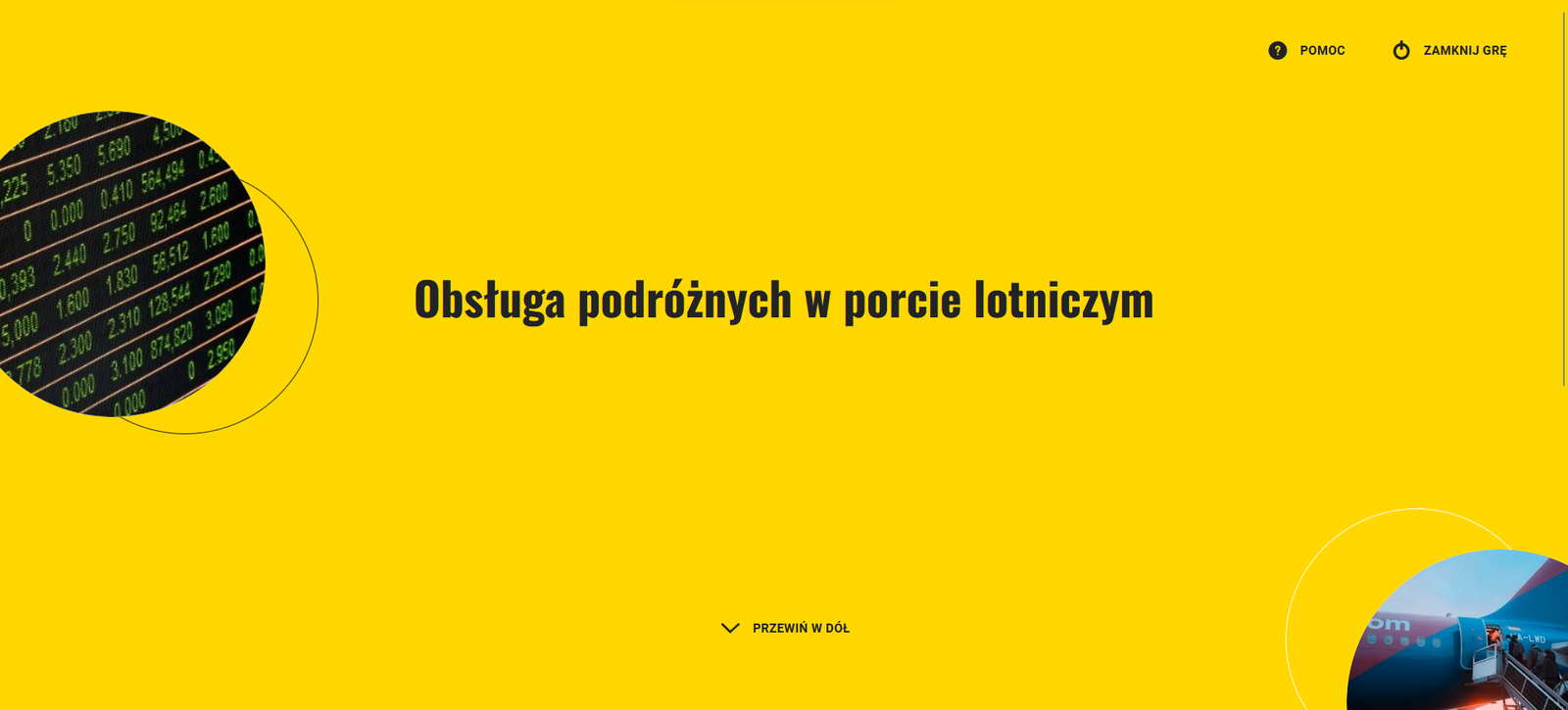 W prawym górnym rogu znajdziesz przyciski ZAMKNIJ GRĘ i POMOC. Możesz z nich skorzystać na dowolnym etapie gry. Zamknięcie gry nie spowoduje utraty zdobytych dotąd punktów. Pod przyciskiem POMOC znajdziesz kompendium wiedzy w pytaniach i odpowiedziach, co pomoże Ci udzielać poprawnych odpowiedzi w tej grze.