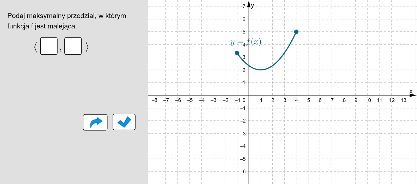 Maksymalnym przedziałem, w którym ta funkcja jest malejąca jest 1. , 2. , 3. , 4. , 5. , 6. .