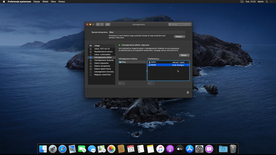 Film zawiera informację o udostępnianiu folderu w systemie MacOS Catalina.