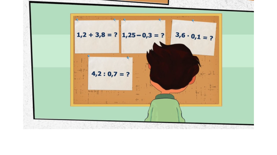 Pokaz multimedialny - Działania na ułamkach dziesiętnych. Instrukcja obsługi z poziomu klawiatury: 1. Uruchomienie aplikacji - ENTER, 2. Na każdym ze slajdów czytany jest automatycznie tekst alternatywny po polsku, 3. Przy pierwszym uruchomieniu na pierwszym slajdzie, czytanie tekstu po angielsku - TAB, 4. Przejście między slajdami: do następnego slajdu - TAB, do poprzedniego slajdu - TAB + SHIFT, 5. Przejście do czytania napisu po angielsku - strzałka w górę + strzałka w dół (czyta tekst po angielsku widoczny na slajdzie).