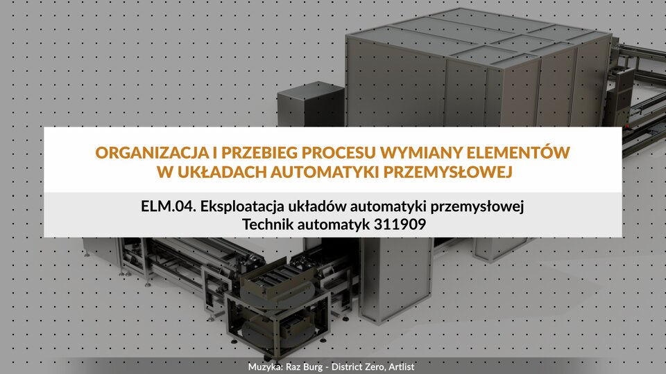 Materiał filmowy o tytule: "Organizacja i przebieg procesu wymiany elementów w układach automatyki przemysłowej" dla kwalifikacji E EL EM kropka 04 kropka Eksploatacja układów automatyki przemysłowej, Technik automatyk (kod zawodu: 311909)