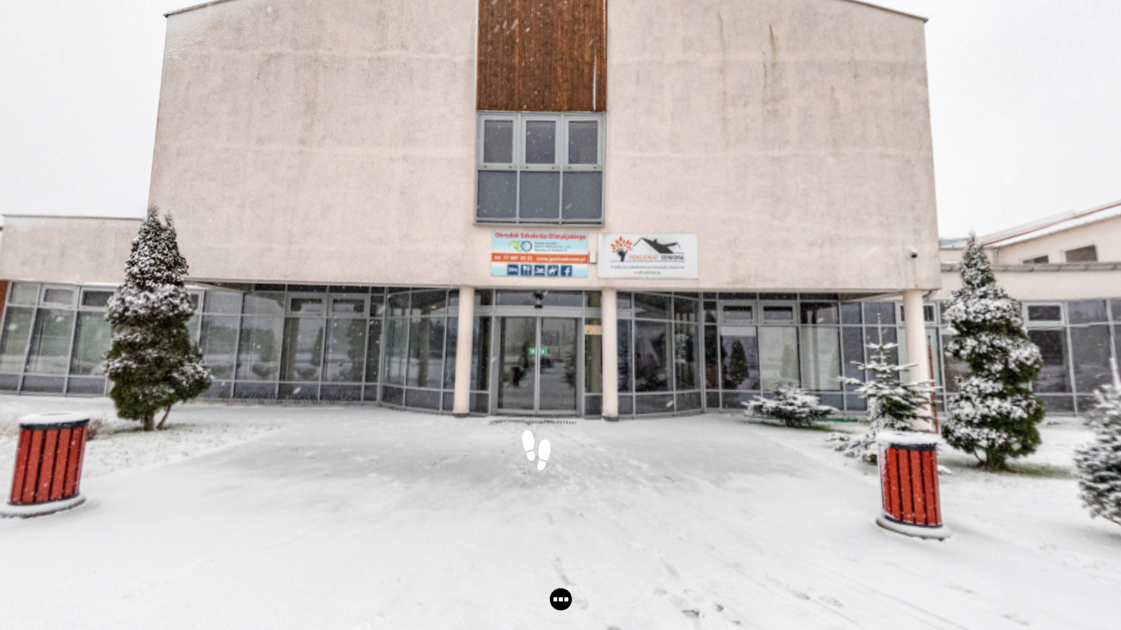 Ekran startowy przedstawia wejście do budynku, jakim jest Ośrodek Szkolenia Olimpijskiego Gminny Ośrodek Sportu i Rekreacji w Zakrzowie.