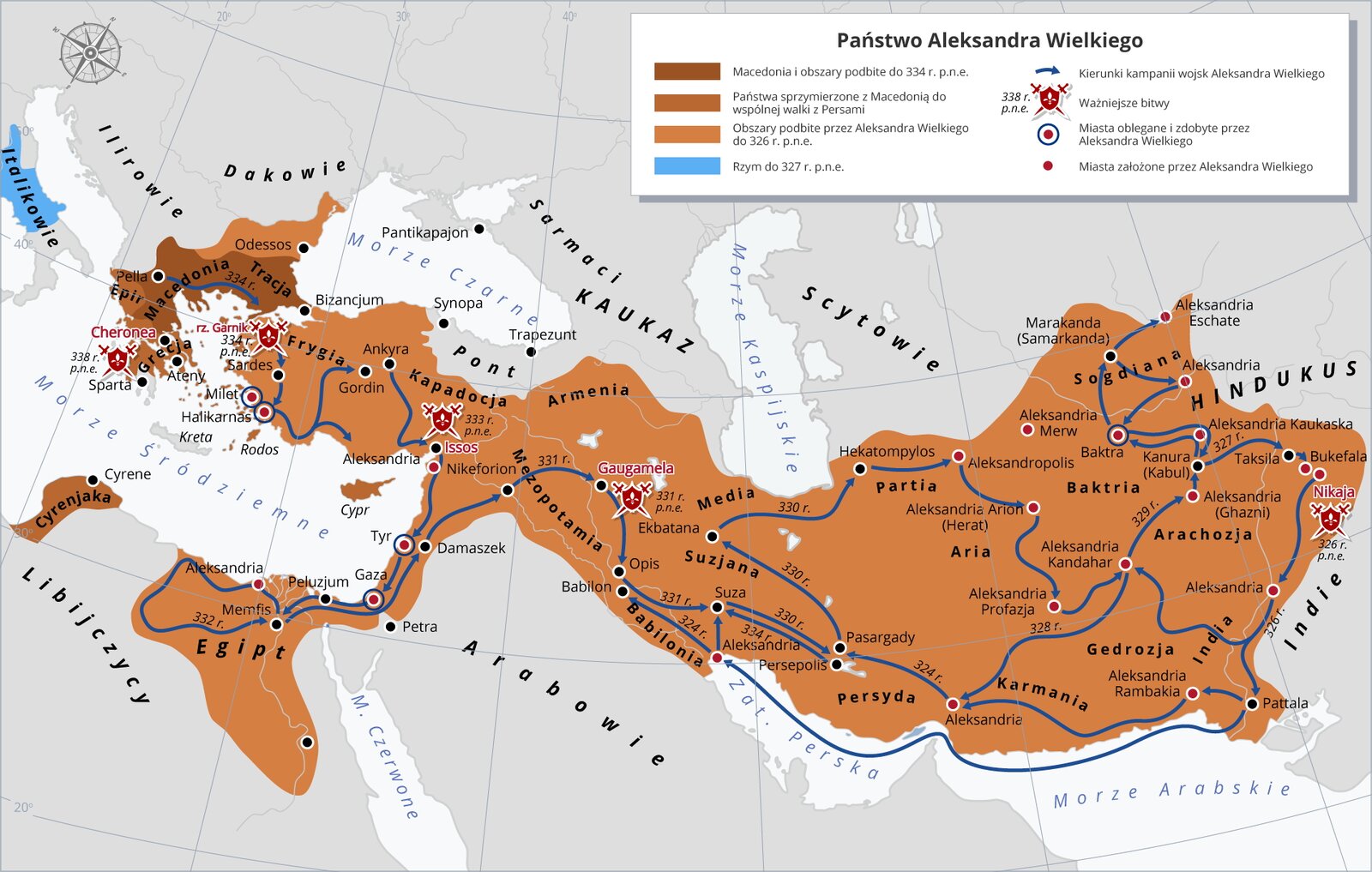 • Wskazywać na mapie zasięg imperium Aleksandra.
