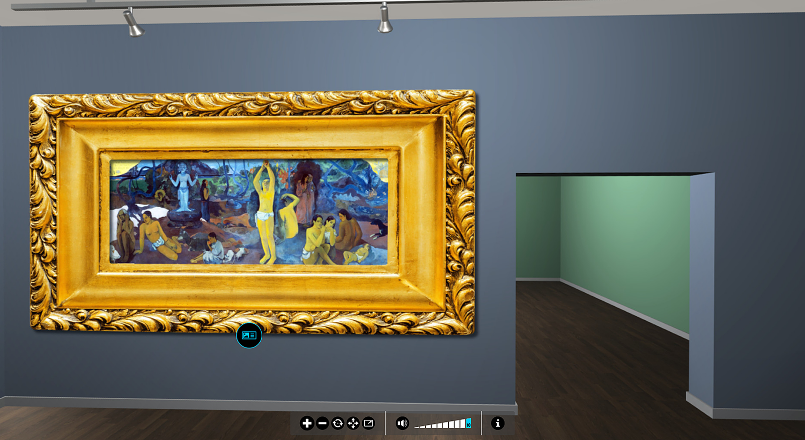 Animacja przedstawia współczesne wnętrze wystawowe, na którego ścianach rozwieszone są w złoconych ramach obrazy Paula Gauguina. Na pierwszej ścianie znajduje się obraz „Skąd przychodzimy? Kim jesteśmy? Dokąd zmierzamy?”. Dzieło ukazuje pogrupowane, półnagie postacie oraz zwierzęta im towarzyszące na tle natury. Należy je czytać od prawej strony, gdzie zobrazowany został moment narodzin. Środkowa strefa kompozycji odnosi się do codziennej egzystencji dorosłego człowieka. Po lewej stronie ukazana została stara kobieta pogodzona z nadchodzącą śmiercią. Błękitny bożek należy do strefy, w której znajdziemy się po przejściu na drugą stronę. Symbolizuje to, co spotka nas po śmierci. Tytuł malowidła zapisany został w lewym górnym rogu. Biały ptak trzymający jaszczurkę, umieszczony u stóp kobiety, oznacza daremność, bezcelowość słów w obliczu śmierci. Do dzieła dołączone są dodatkowe informacje: Paul Gauguin – „Skąd przyszliśmy? Kim jesteśmy? Dokąd idziemy” – 1897 – 1898. Obraz namalowany na Tahiti. W 1891 roku Gauguin opuścił Francję przenosząc się na Tahiti. Poszukiwał prostego, prawdziwego życia nieujętego w ramy sztucznych konwenansów. Uważał, że obraz Skąd przychodzimy? Kim jesteśmy? Dokąd zmierzamy?, stworzony w czasie osobistego kryzysu, jest jego największym dziełem, podsumowującym jego przemyślenia i poglądy. Na drugiej ścianie zamieszczony jest obraz „Żółty Chrystus”. W centrum ukazuje ukrzyżowanego Chrystusa. Pod krzyżem znajdują się bretońskie kobiety w regionalnych strojach. Klęczą pogrążone w smutku. Tło wypełnia daleki pejzaż, utrzymany w żółtych i rdzawych kolorach o nierównym terenie. Jesienny pejzaż oddany barwami żółtą, zieloną i rdzawą doskonale koresponduje z postacią Chrystusa. Poszczególne elementy posiadają wyraźne, grube kontury i płaską formę. Do dzieła dołączone są dodatkowe informacje: Paul Gauguin – „Żółty Chrystus” – 1889. Obraz Żółty Chrystus jest dziełem naznaczonym dwuznacznością. Do świata rzeczywistości należą kobiety, podczas gdy postać Chrystusa jest świętym obrazem, wysnutym z ich wiary. Gauguin wyjechał w 1888 roku do Arles, gdzie mieszkał przez ok. dwa miesiące, a po nieporozumieniach z van Goghiem powrócił do Pont‑Aven (początek 1889), gdzie mieszkał do wiosny 1890. Latem 1889 udał się na krótką wizytę do Paryża, aby obejrzeć światową wystawę i wziąć udział w wystawie “symbolistów i syntetystów” w Café Volpin. Po powrocie namalował Żółtego Chrystusa. Inspiracją dla namalowania obrazu stał się krucyfiks w kościele w Trémalo niedaleko Pont‑Aven. Na trzeciej ścianie znajdują się dwa obrazy. Pierwszy to „Wizja po kazaniu. Walka Jakuba z aniołem” Ukazuje kilka kobiet przypatrujących się scenie walki Jakuba z aniołem. Kobiety ubrane są w regionalne stroje bretońskie. Niektóre z nich mają złożone ręce i modlą się. Inne z zaciekawieniem spoglądają na scenę walki, która odbywa się na jednolitym, czerwonym tle. Kompozycja charakteryzuje się zastosowaniem dużych plam czystego koloru, niemal pozbawionych światłocienia. Szczególnie intensywna jest czerwień ziemi, zupełnie odbiegająca od barw spotykanych w naturze. Ukośnie rosnące drzewo dzieli obraz na dwie strefy: realną z bretońskimi kobietami na pierwszym planie oraz symboliczną ze sceną walki Jakuba z aniołem. Do dzieła dołączone są dodatkowe informacje: Paul Gauguin – „Wizja po kazaniu” – 1888. Znany też pod tytułem Walka Jakuba z aniołem. Obraz ten uznawany jest za dowód przejścia Gauguina od impresjonizmu do symbolizmu. Jest to też pierwszy obraz namalowany przez Gauguina w stylu określanym jako syntetyzm. Został przez autora ofiarowany proboszczowi w miasteczku Nizon, jednak ten nie przyjął daru. W obrazie współistnieją dwa światy: rzeczywisty (reprezentowany przez klęczące na pierwszym planie Bretonki) i fantastyczny (biblijna walka Jakuba z aniołem). Drugim dziełem jest „Mave nave moe” (Słodkie sny). Praca ukazuje wspomnienia artysty o Tahiti i jego romantyczne sny o harmonii wszystkich na ziemi. Tahitańskie dziewczyny symbolizują różne etapy życia. Młoda kobieta z aureolą nad głową po lewej stronie, jest zamyślona, ukazana jak we śnie i oznacza ucieleśnienie dziewiczej czystości. Druga dziewczyna z owocami w dłoni, jest gotowa do gryzienia owocu. W głębi krajobrazu mieszkańcy wyspy tańczą wokół bożka. Kolory są czyste i płaskie - dominują czerwienie i róże oraz zielenie i błękity. Plamy oddziela delikatny kontur. Do dzieła dołączone są dodatkowe informacje: Paul Gauguin – „Nave nave moe” – 1894. Obraz przedstawia dwie kobiety tahitańskie, odpoczywające na łonie natury w pobliżu lustra wody. Napis znajdujący się w lewym dolnym rogu – Nave nave moe, jest tłumaczony jako „Radość odpoczynku”, „Radość inspiracji” lub „Słodkie sny”. Dzieło ma jednak głębsze symboliczne znaczenie i nawiązuje do chrześcijańskiego Odkupienia. Przedstawiona kobieta z jabłkiem nawiązuje do biblijnej Ewy i jest jej tahitańską wersją. Obok niej siedzi kobieta z aureolą, co ma sugerować, iż jest to Matka Boska. Na ostatniej ścianie został zaprezentowany „Autoportret z Żółtym Chrystusem”. Ukazuje popiersie malarza, zwróconego lekko w lewą stronę. Artysta ma na sobie codzienny strój. Za nim widoczne są jego dzieła. Do dzieła dołączone są dodatkowe informacje: Paul Gauguin – „Autoportret z Żółtym Chrystusem” – 1889. Obraz ukazuje popiersie artysty. Jego wzrok jest skierowany w oczy widza. Z tyłu, z lewej strony wisi Chrystus, z prawej natomiast widać dzbanek na tytoń z „peruwiańskim” obliczem artysty, rzeźbę, którą Gauguin wykonał dla Émile’a Schuffeneckera. W ten sposób obraz dzieli się na dwie sfery: po jednej jego stronie ukazane jest męc