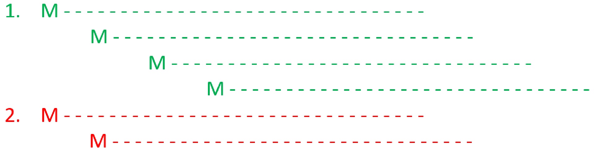 - kanon – jeden z najstarszych typów techniki polifonicznej opartej na ścisłej imitacjiimitacji. W kanonie, tę samą linię melodyczną głosu rozpoczynającego, powtarzają kolejno z pewnym opóźnieniem wszystkie występujące głosy (2, 3, 4 lub nawet więcej). Przedstawiono to na poniższym schemacie, gdzie M to melodia.