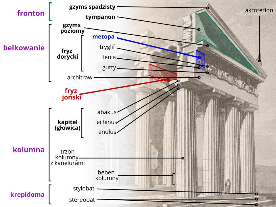 Wymień i omów elementy dekoracyjne zdobiące belkowaniebelkowanie nad kolumnamikolumnami Partenonu oraz tematykę metopmetopametopmetopmetopametop.