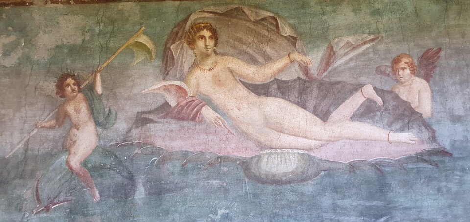 W Pompejach zachował się fresk reprezentujący późniejszy, tzw. trzeci styl malarstwa pompejańskiego w Rzymie*,* wzorowany na dziele Apellesa.