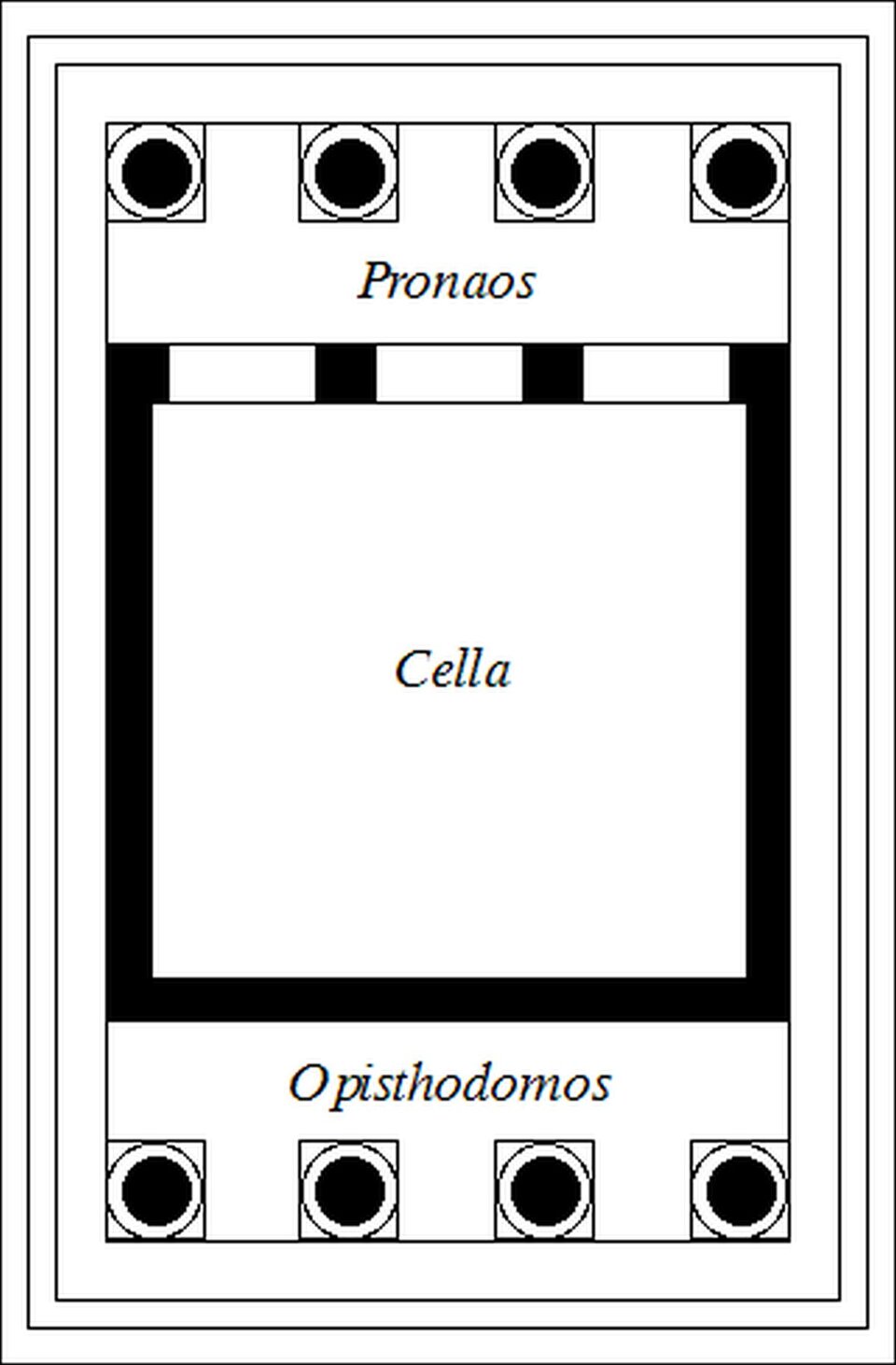 Partenon to typ świątyni amfiprostylosamfiprostylos - oktastylosoktastylos. Przedrostek „amfi” (z greki oznaczający „po obu stronach” lub „z dwóch stron”) odnosi się do portykówportyków zlokalizowanych po obu przeciwległych stronach budowli — na osi wschodniej i zachodniej, co nadaje budowli symetryczny charakter i umożliwia wielokierunkowy dostęp. Określenie peripterosperipteros wskazuje na otaczający świątynię pojedynczy rząd kolumnkolumn, które tworzą charakterystyczną perystazęperystazę, zapewniając zarówno funkcję nośną, jak i estetyczną ramę architektoniczną. Natomiast oktastylosoktastylos oznacza obecność ośmiu kolumnkolumn w fasadziefasadzie frontowej, co stanowi odstępstwo od standardowego układu doryckiegodoryckiego, w którym fasadyfasady zwykle liczyły ich sześć.