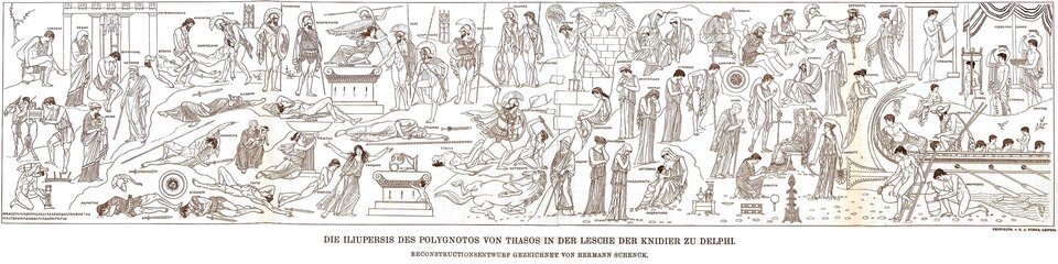 Ważne miejsce w jego twórczości zajmuje Stoa Poikile w ateńskiej Agorze. Tam znajdowało się jedno z najbardziej reprezentatywnych dzieł artysty - Zdobycie Troi. Kompozycja ta – jak wynika z relacji Pauzaniasza – cechowała się wielowątkową narracją, bogactwem postaci i dramatycznym napięciem.