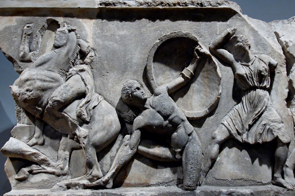 Nazwij wydarzenia przedstawione na tarczy Ateny.