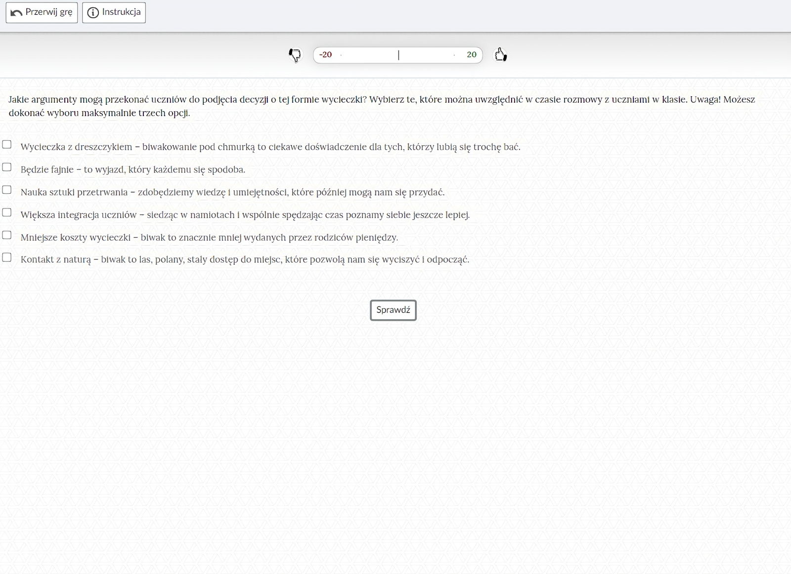 Podaj 3 argumenty, jakie mogą przekonać uczniów do podjęcia decyzji o tej formie wycieczki.