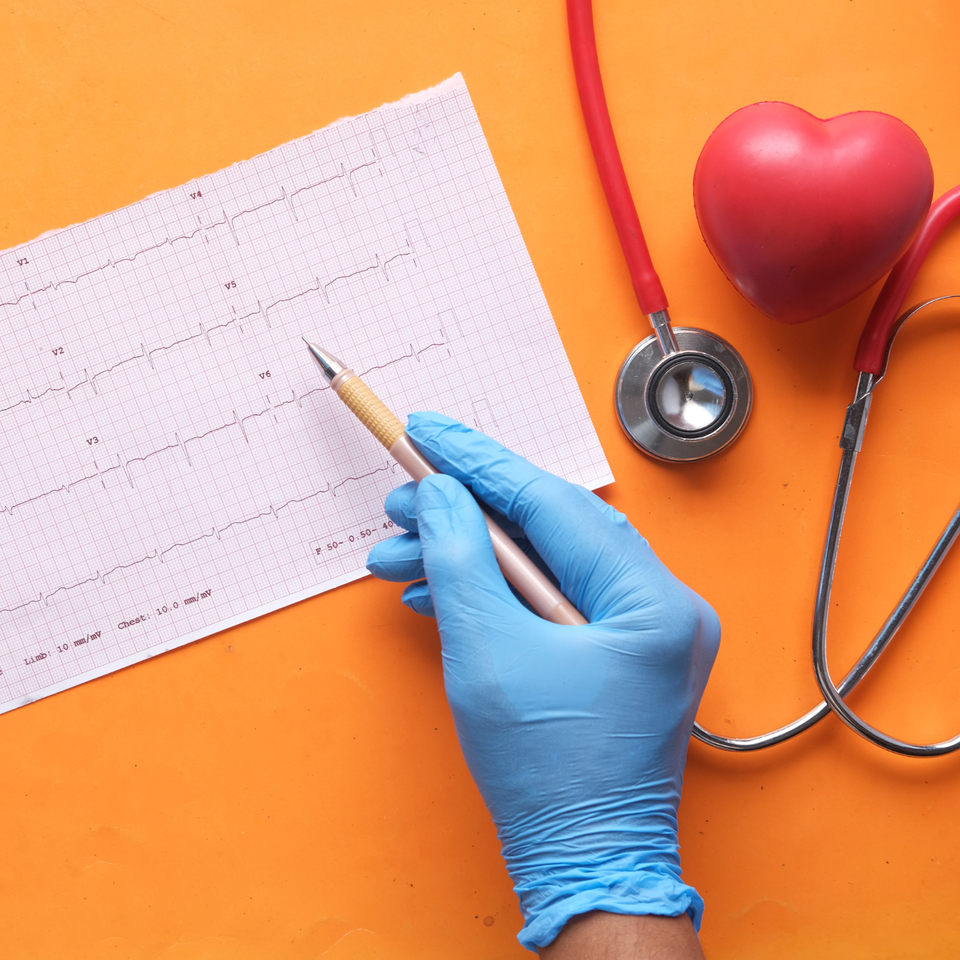 Zdjęcie przedstawia osobę ze stetoskopem na szyi, która przykłada jego końcówkę do serca nadrukowanego na bluzce. Po prawej logo koła, w środku ikoną serca i połączonymi dłońmi: małą i dużą.