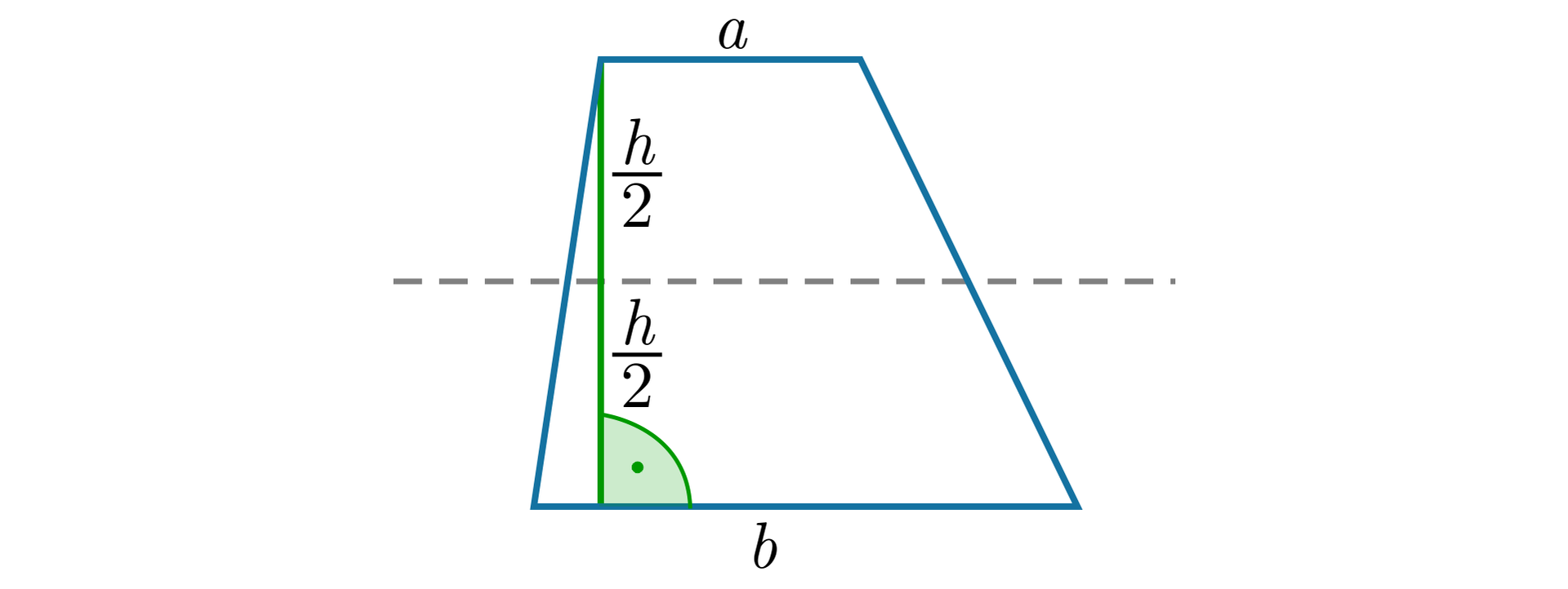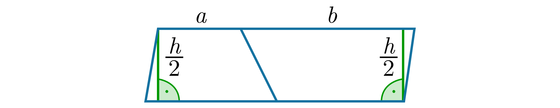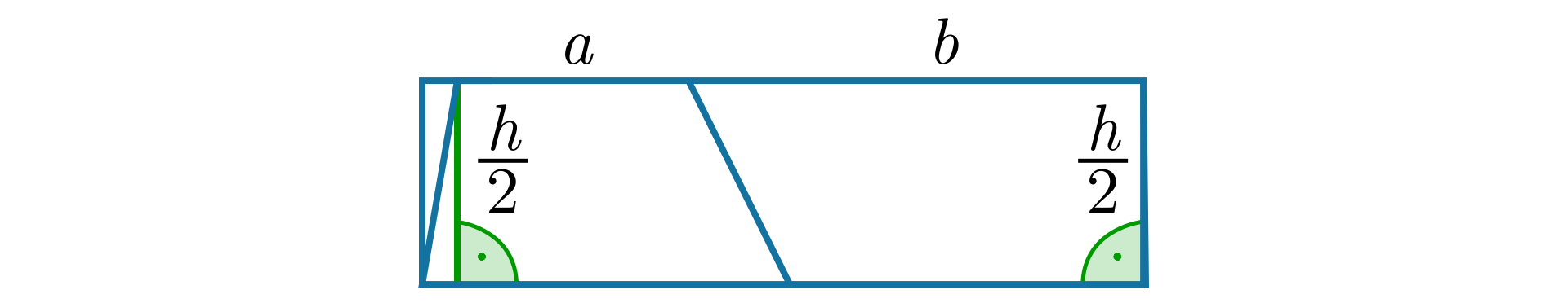 Udowodnij, że każdy trapez możemy przebudować na prostokąt o wymiarach na , gdzie to długość krótszej podstawy trapezu, to długość dłuższej podstawy trapezu, a to jego wysokość.